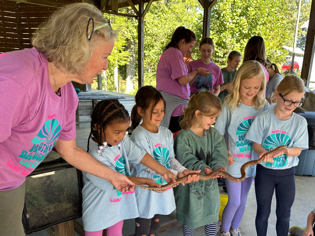 With 75 campers, 68 mothers, grandmothers, aunts, and friends, and 28 smiling staff, camp was alive with laughter and fun. Families enjoyed horseback riding, a lively Nature class featuring Toadally Awesome, the toad, Charlie the snake, and baby raccoons, plus camp songs, arts & crafts, and—of course—s’mores! The highlight was a spirited mother–daughter game of Double Trouble that had everyone cheering. New friendships were made, memories were shared, and the camp spirit shone brightly all weekend. Best of all, the weekend sparked 15 registrations for the 2026 camp season!